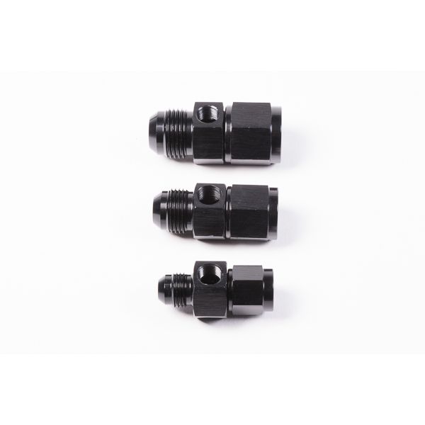 10AN tee fitting adapter; -AN Male to -AN Female with 1/8" female NPT Female threads; Commonly used to install a sensor or gauge inline with a -AN hose
