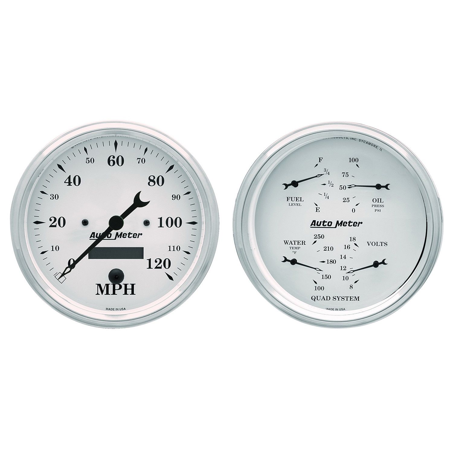 2 PC. GAUGE KIT, 3-3/8 in. QUAD & SPEEDOMETER, 240-33 O, OLD TYME WHITE