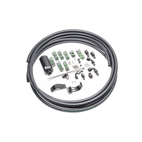 Fuel hanger plumbing kit designed to be used with Radium in-tank fuel pump hanger. For early model Nissan S & R chassis cars such as S13 and R32. Includes lines, line brackets, fuel filter and all fittings necessary. 6 Micron microglass fuel filter element.