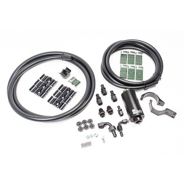 High flow fuel lines to travel between the Radium fuel hanger and the port injection kit for the MK5 GR Supra. Includes fuel filter with micro-fiberglass element, all fittings, lines and brackets.