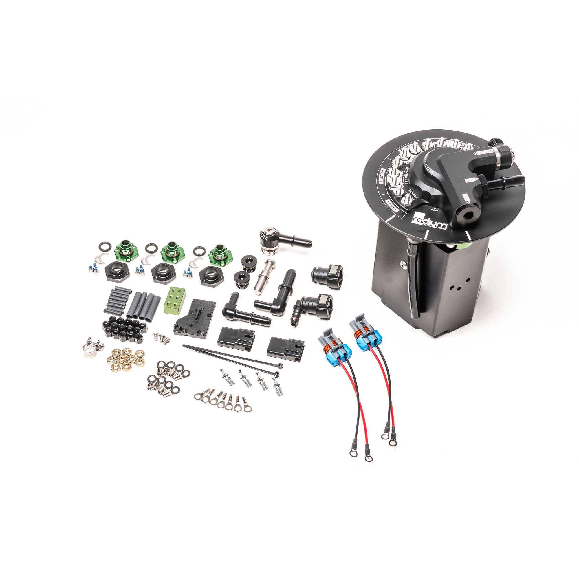 Drop-in fuel pump hanger for GM vehicles (Cadillac CTS, Camaro, etc). Can be used with one or two aftermarket high-flow fuel pumps (not included). Check website for fuel pump compatibility. Retains function of OEM fuel level sender and can hook up to factory fuel lines or aftermarket fuel lines can be used. Compatible with E85.