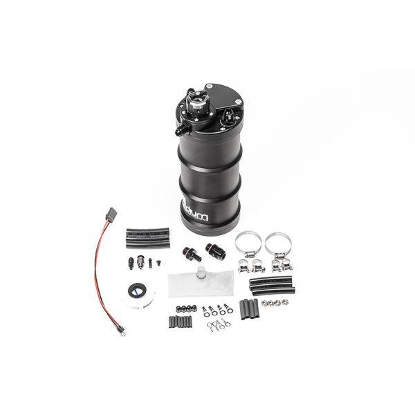 Updated design for 2023. Fuel surge tank with integrated fuel pressure regulator. Utilizes an internal fuel pump (sold separately). Separate fuel pressure regulator not needed. For EFI systems only. Universal design.