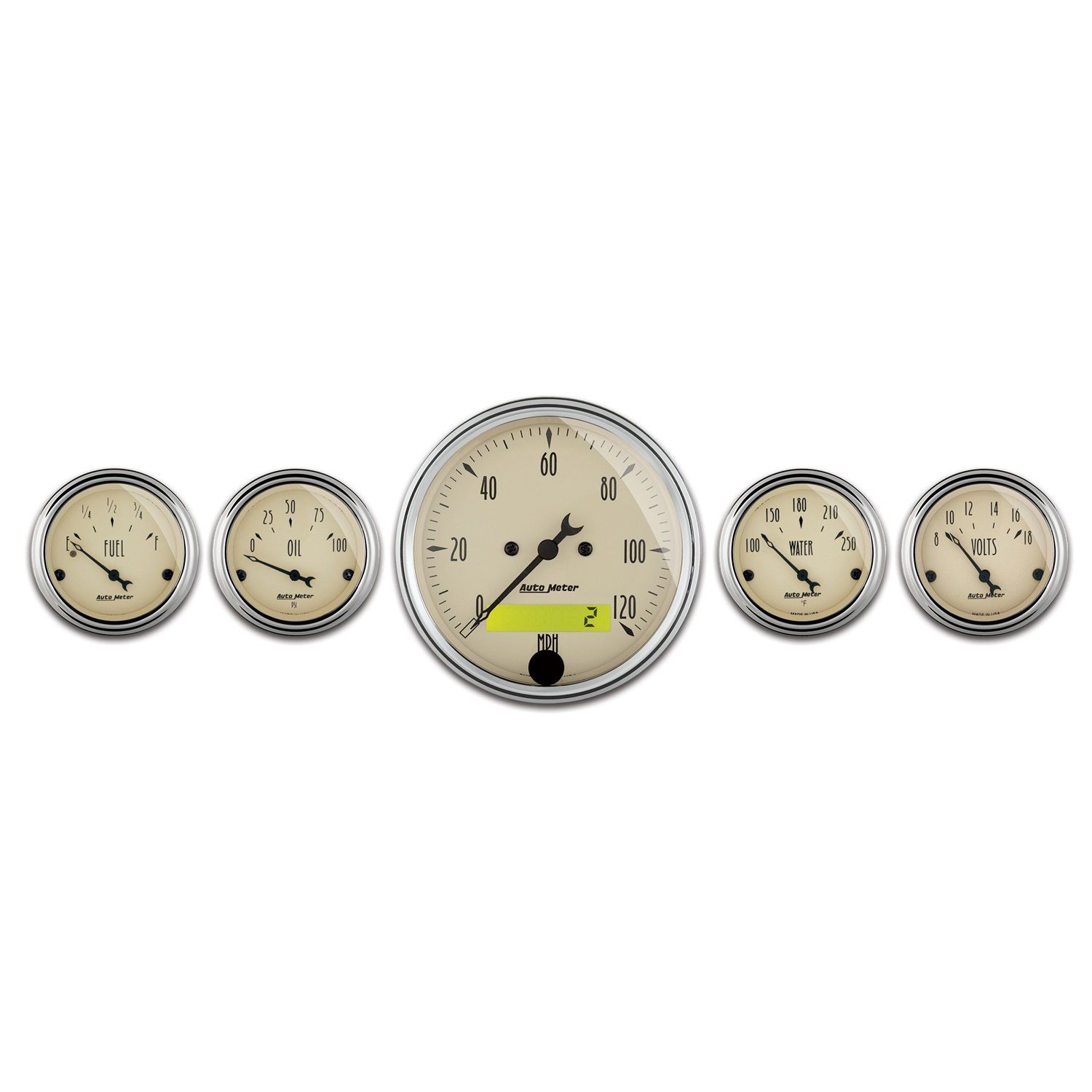 5 PC. GAUGE KIT, 3-1/8 in. & 2-1/16 in. , ELEC. SPEEDOMETER, ANTIQUE BEIGE
