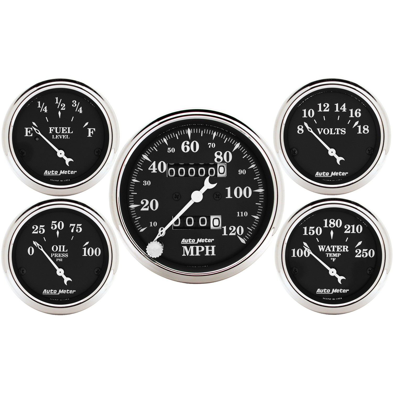 AutoMeter has brought together the most popular gauges into a simple kit. The kit includes a speedometer, water temperature, oil pressure, fuel level, and voltmeter. All senders included where applicable.