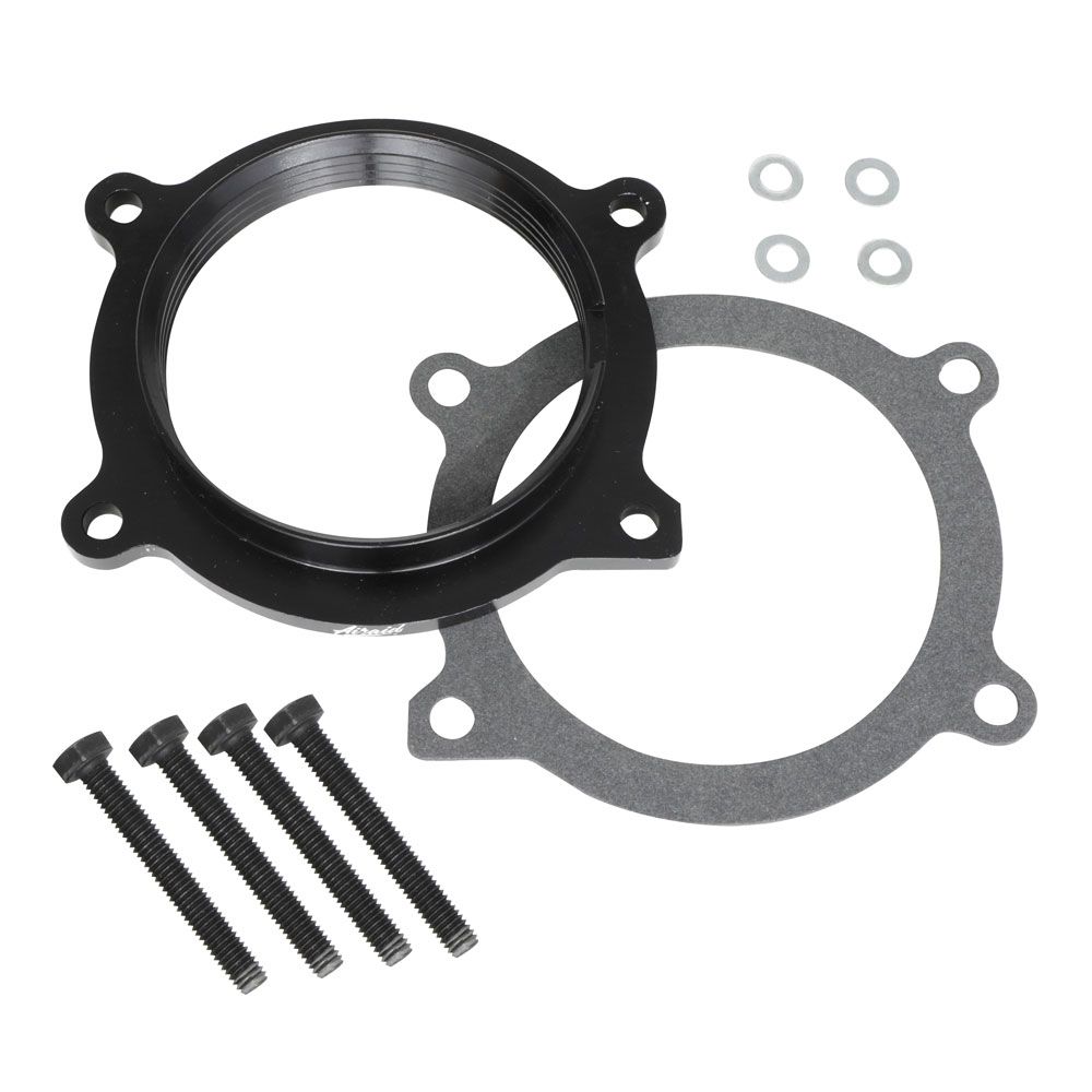 The AIRAID Throttle Body Spacer is designed to enhance off-idle torque from 800 rpm to approximately 3,000 rpm. The spacer utilizes it’s unique, patented Helix Bore design to spin the incoming air charge as it passes through the throttle body spacer. The spinning air action boosts the velocity of the incoming air and contributes to better atomization of the air/fuel mixture as the air charge enters the combustion chamber. The end result is more part-throttle torque and improved mid-range power.