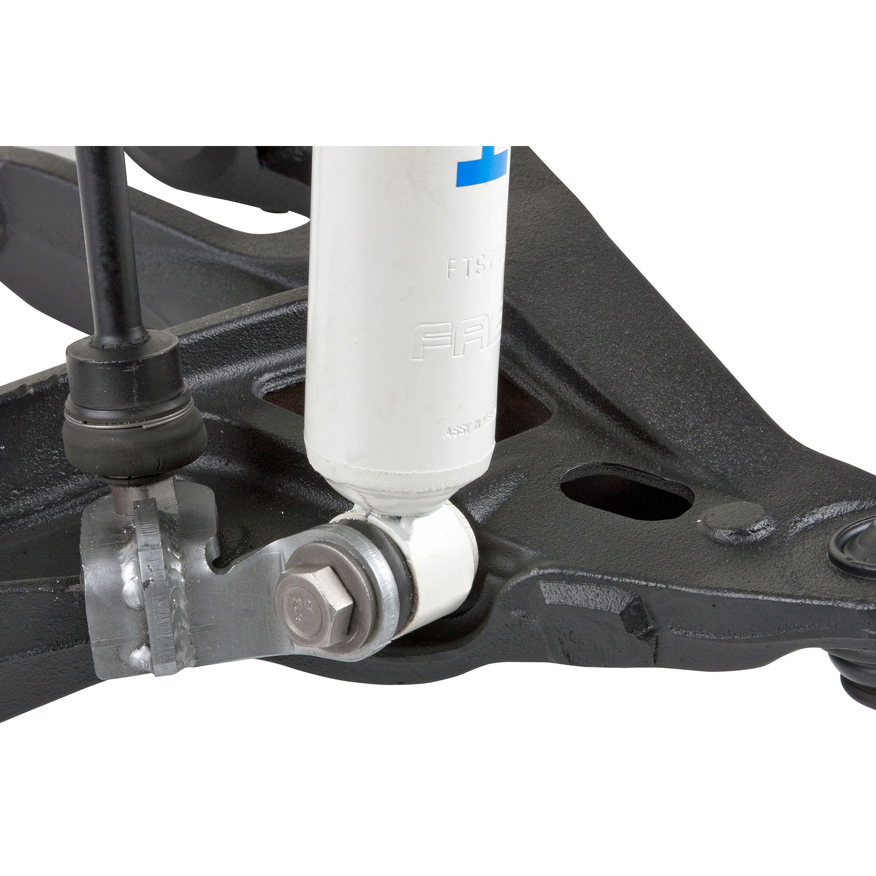 Fabtech introduces a double shear lower shock mount designed to eliminate the bending found with the factory stock shock bolt. This heavy duty bracket gives support to both sides of the front lower shock eye rather than only on one side like factory. The bracket bolts on the lower control arm and can be used on stock suspensions or lifted aftermarket systems. Sold in pairs.