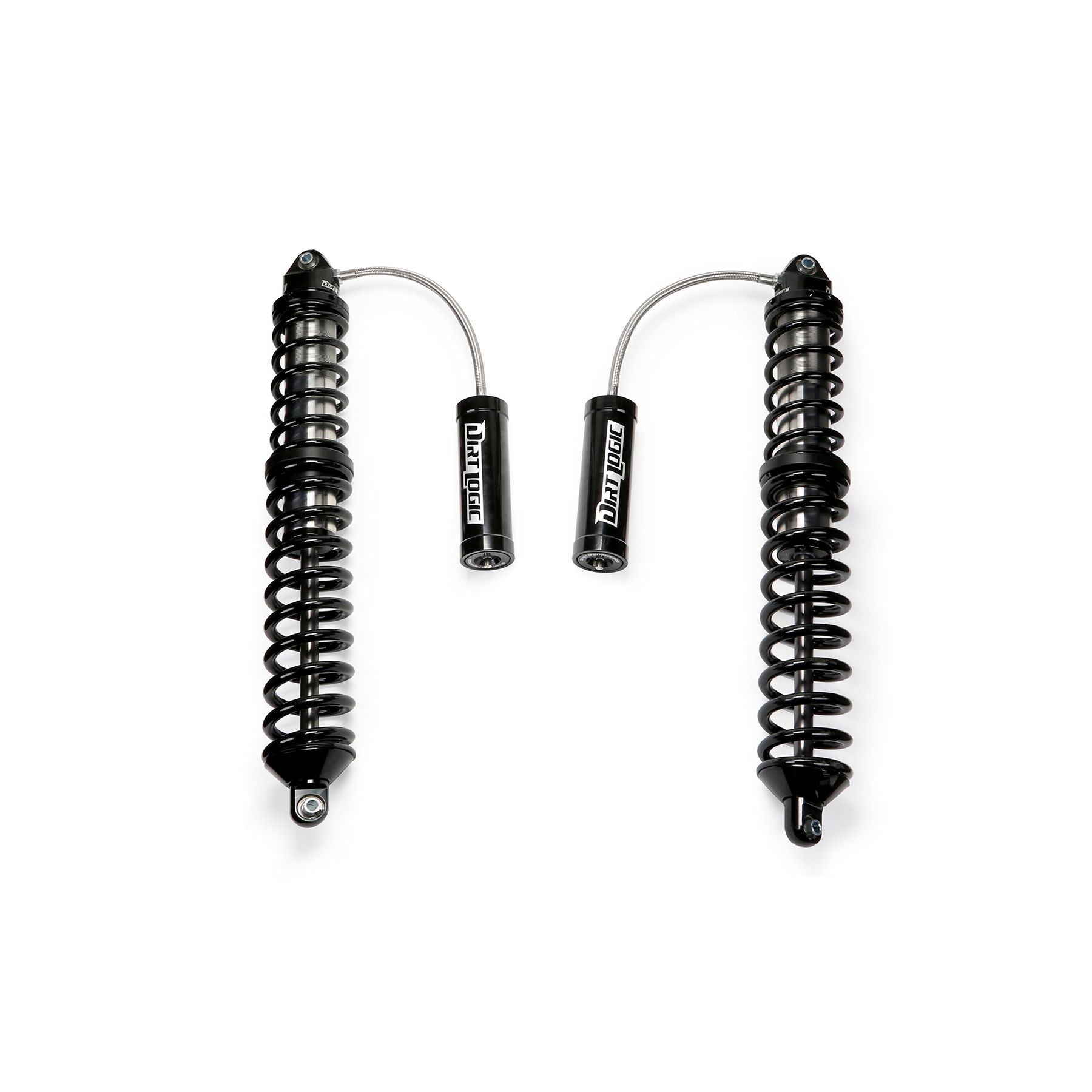 Dirt Logic 2.5 Resi Coilovers. From our desert racing experience the Dirt Logic 2.5 has been developed for exceptional performance in a variety of Coilover applications. The Dirt Logic 2.5 will provide incredible dampening capacity for aggressive offroad driving. Features: 2.5in OD Stainless Steel Body. 2.25in OD Billet Aluminum Piston. 7/8in NitroSteel Black Piston Rod. Cold Wound Coil Springs. Adjustable Coilover Construction. 5/8in Spherical Ball Mounting Ends. 2.50in OD Aluminum Reservoir w/-8 Stainless Steel O-ring Hose. Extended Length – E26.75. Collasped Length – C17.86. Stroke Length – S8.89 . Top Mount – B1. Bottom Mount – B1.