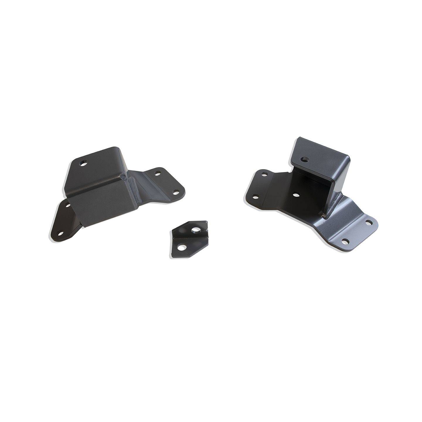 MAXTRAC SUSPENSION’S PART# 420520 IS A PAIR OF 2" REAR LOWERING HANGERS INCLUDING E-BRAKE BRACKET, FABRICATED FROM STEEL & POWDER COATED GREY