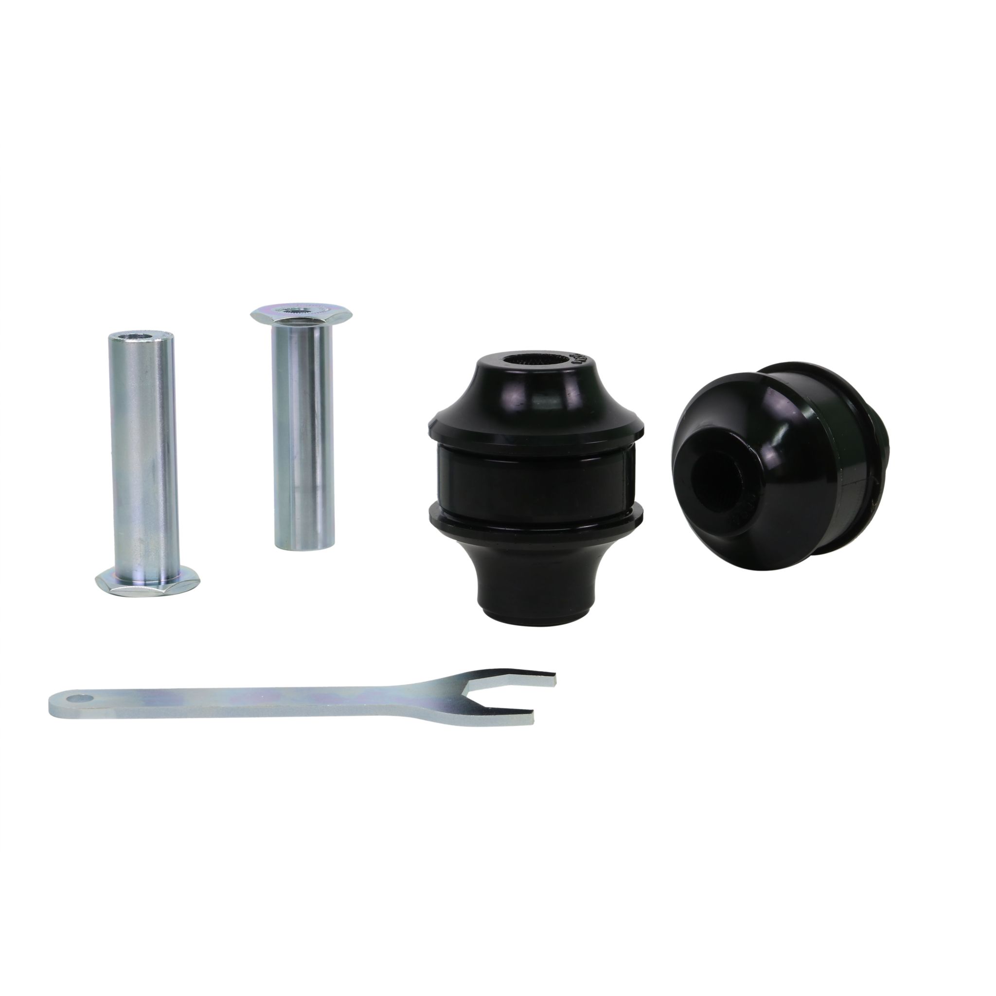 Whiteline caster kits are designed to improve cornering grip and vehicle straight line stability through increased static caster and dynamic negative camber gain. In addition, synthetic elastomer bushings provide improved steering feedback and braking performance.