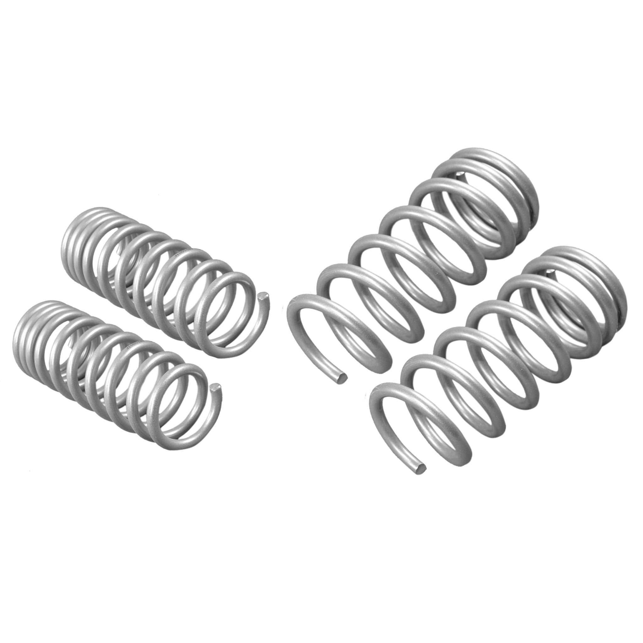 Whiteline Springs deliver improved vehicle performance whilst maintaining safety and ride quality characteristics. This kit contains 8.7kg/mm (491lb/in) front rated springs that provide a 25mm drop while the 8.6kg/mm (480lb/in) rated rears deliver a desirable 35mm to the vehicle. By lowering the vehicles centre of gravity, the unique and progressive rate coil design not only improve performance but enhance overall appearance. Developed and manufactured in Europe from the highest quality materials, coating and to the finest tolerances guaranteeing exact fitment. Whiteline Springs are engineered for optimal balance with OEM and aftermarket shocks. For total grip activation match with Whiteline Sway Bar and Essentials kit for unrivalled handling and optimal vehicle performance.